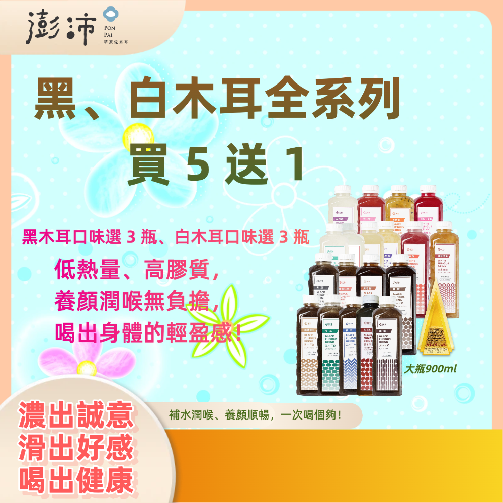 1.商品組合/規格:黑、白木耳任選各3瓶