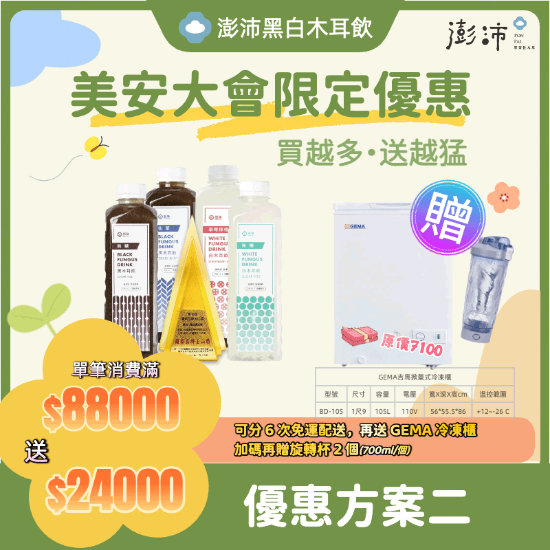 •贈冷凍冰箱 1 台(原價NTD$7,100)