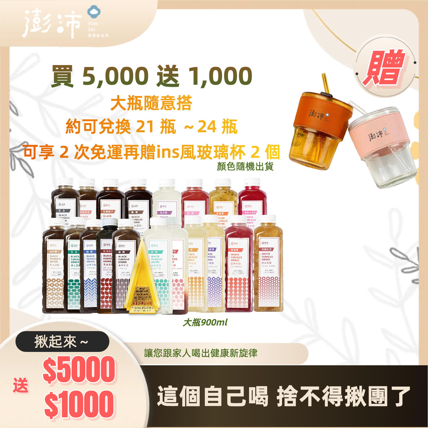 (可免費宅配2次,再送ins風玻璃杯2個!)
