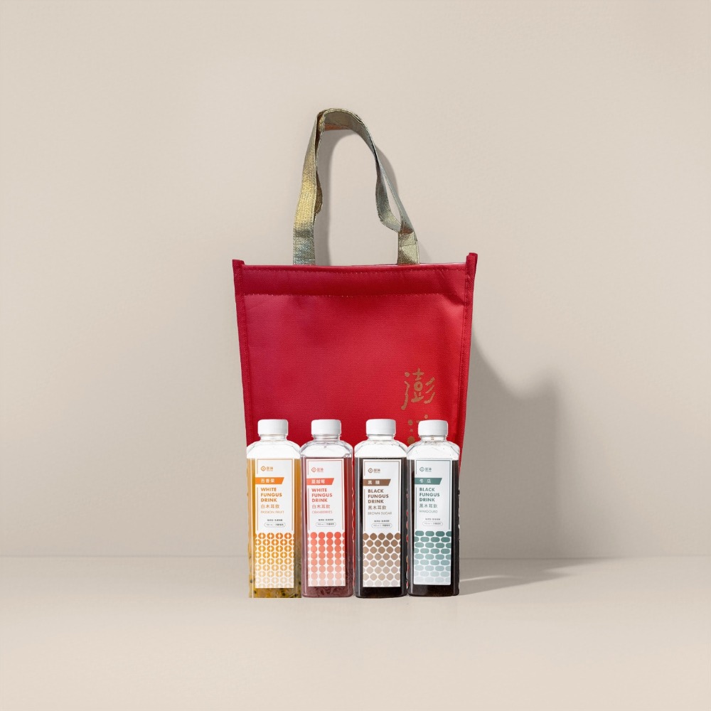 今年過年,把健康與心意一起送到家, 澎沛黑白木耳飲陪你幸福迎新春❤️ 內容包含 黑木耳 2 瓶、白木耳 2 瓶、4入保冷袋 1 個