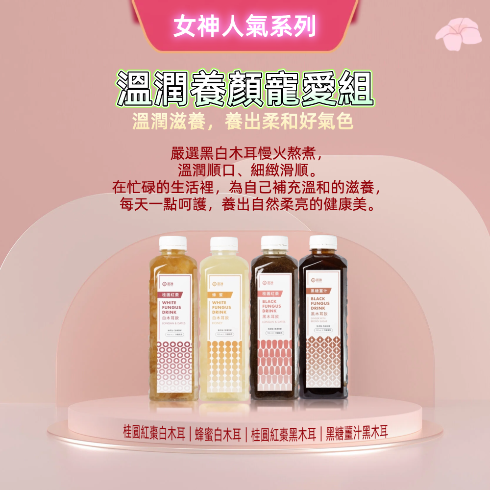女神專屬「溫潤養顏寵愛組」|內含白木耳桂圓紅棗、白木耳蜂蜜、黑木耳黑糖薑汁、黑木耳桂圓紅棗