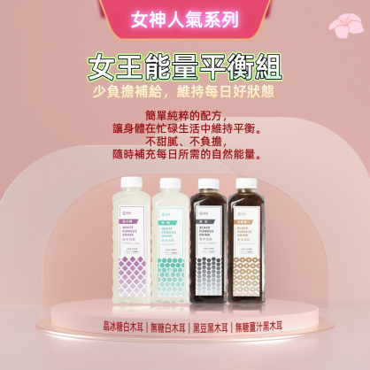 女神專屬 「女王能量平衡組」|內含白木耳晶冰糖、白木耳無糖、黑木耳黑豆、黑木耳無糖薑汁