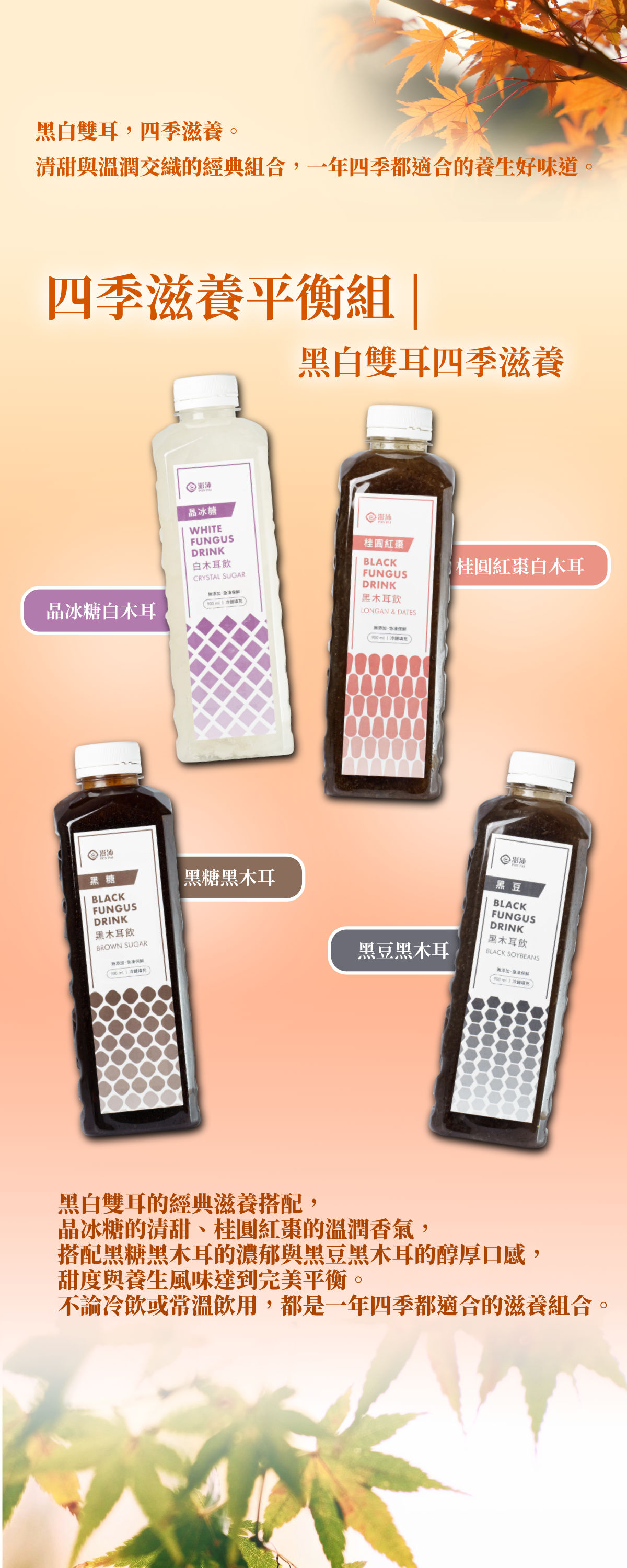 十大人氣組合「四季滋養平衡組」 | 黑白雙耳四季滋養|晶冰糖白木耳+桂圓紅棗白木耳+黑糖黑木耳+黑豆黑木耳