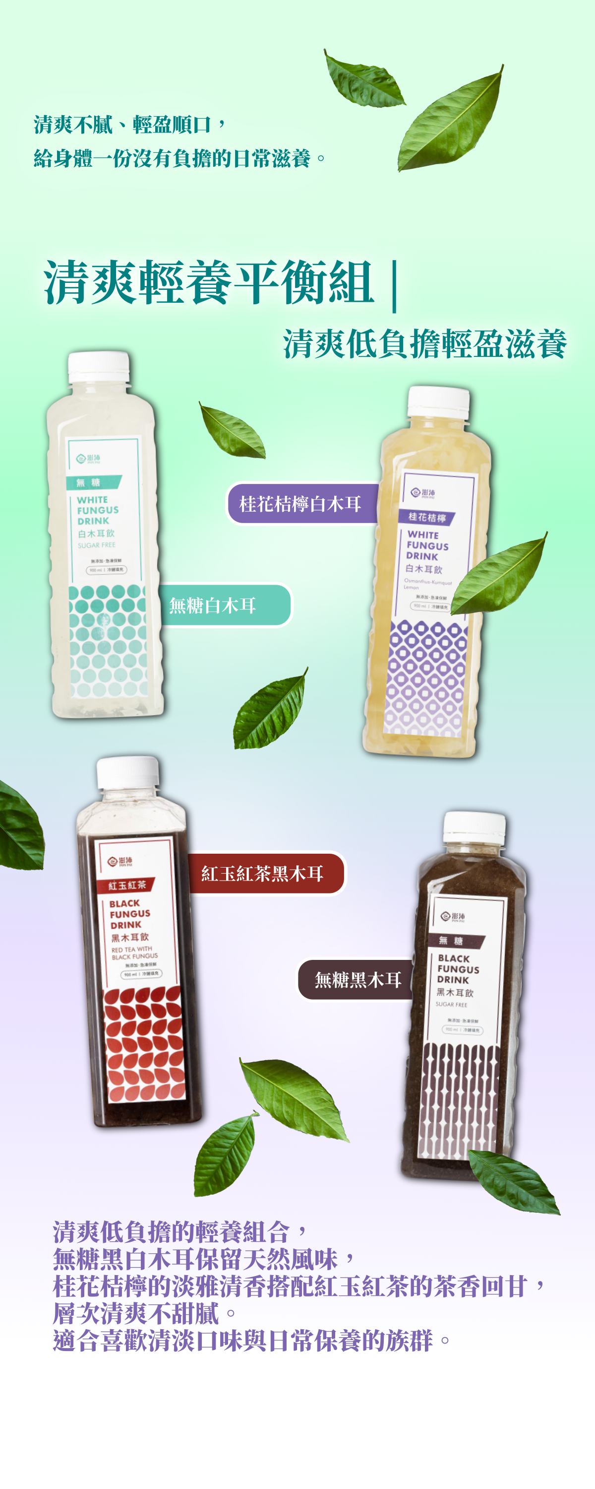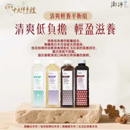 十大人氣組合「清爽輕養平衡組」 | 清爽低負擔輕盈滋養 | 無糖白木耳+桂花桔檸白木耳+無糖黑木耳+紅玉紅茶黑木耳
