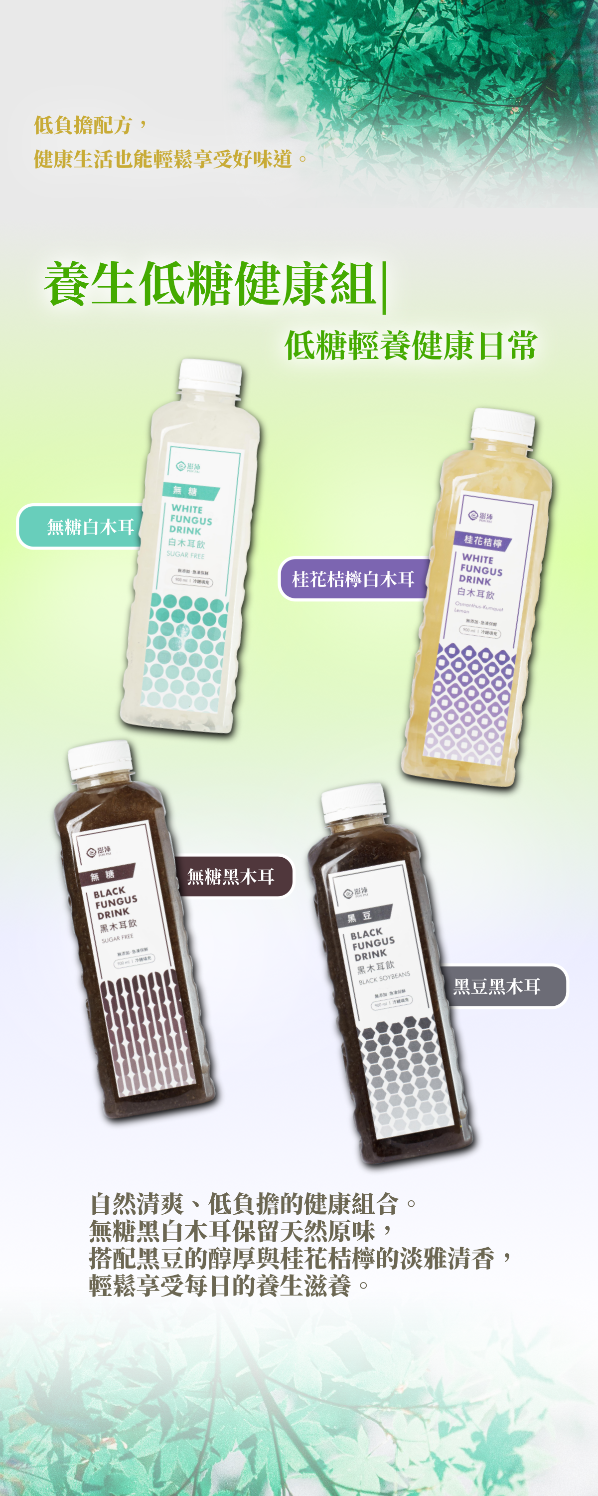 十大人氣組合「養生低糖健康組」 | 低糖輕養健康日常 |無糖白木耳+桂花桔檸白木耳+無糖黑木耳+黑豆黑木耳