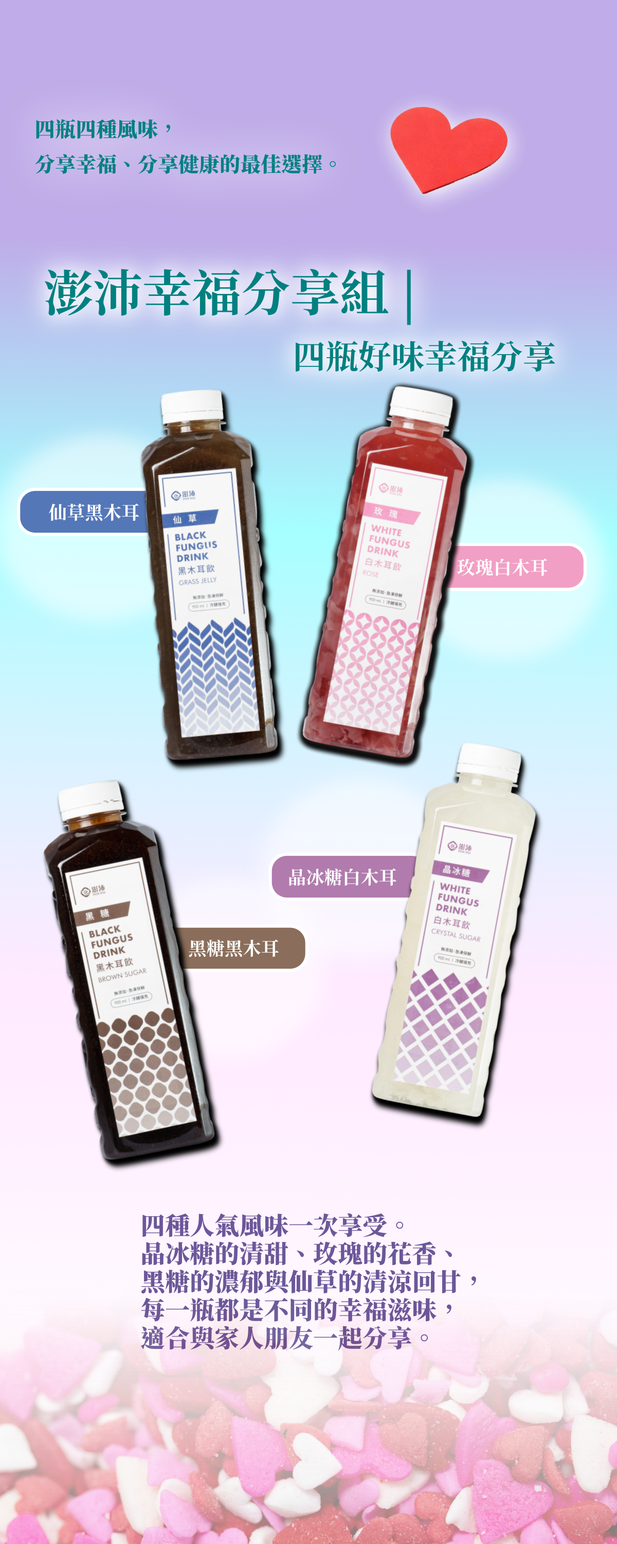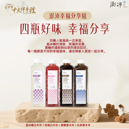 十大人氣組合「澎沛幸福分享組」 | 四瓶好味幸福分享 |晶冰糖白木耳+玫瑰白木耳+黑糖黑木耳+仙草黑木耳